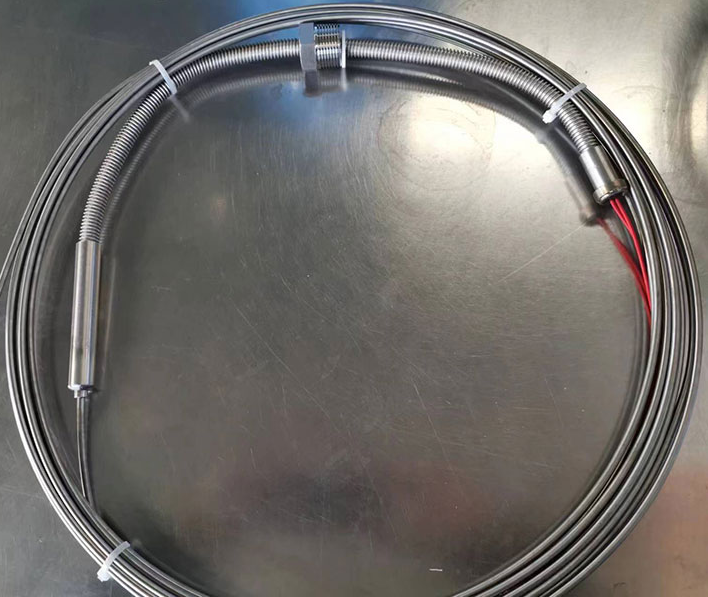 鎧裝礦物絕緣加熱電纜MI它是由電熱合金絲(發(fā)熱體)無機礦物絕緣物和外鞘金屬套管經(jīng)過多次拉伸形成致密度很高的堅實體??梢詽M足高溫條件和大發(fā)熱功率(達100W/m)的需要, 高承受溫度可達600℃;導體電阻值的范圍從4Ω/km到25000Ω/km,具有優(yōu)良的機械強度、耐腐蝕。主要應用于核工業(yè)、建筑業(yè)、金屬制造業(yè)、罐桶、容器加熱、高溫工業(yè)管道伴熱、工藝介質防凝降粘、各類工業(yè)電加熱器等領域。