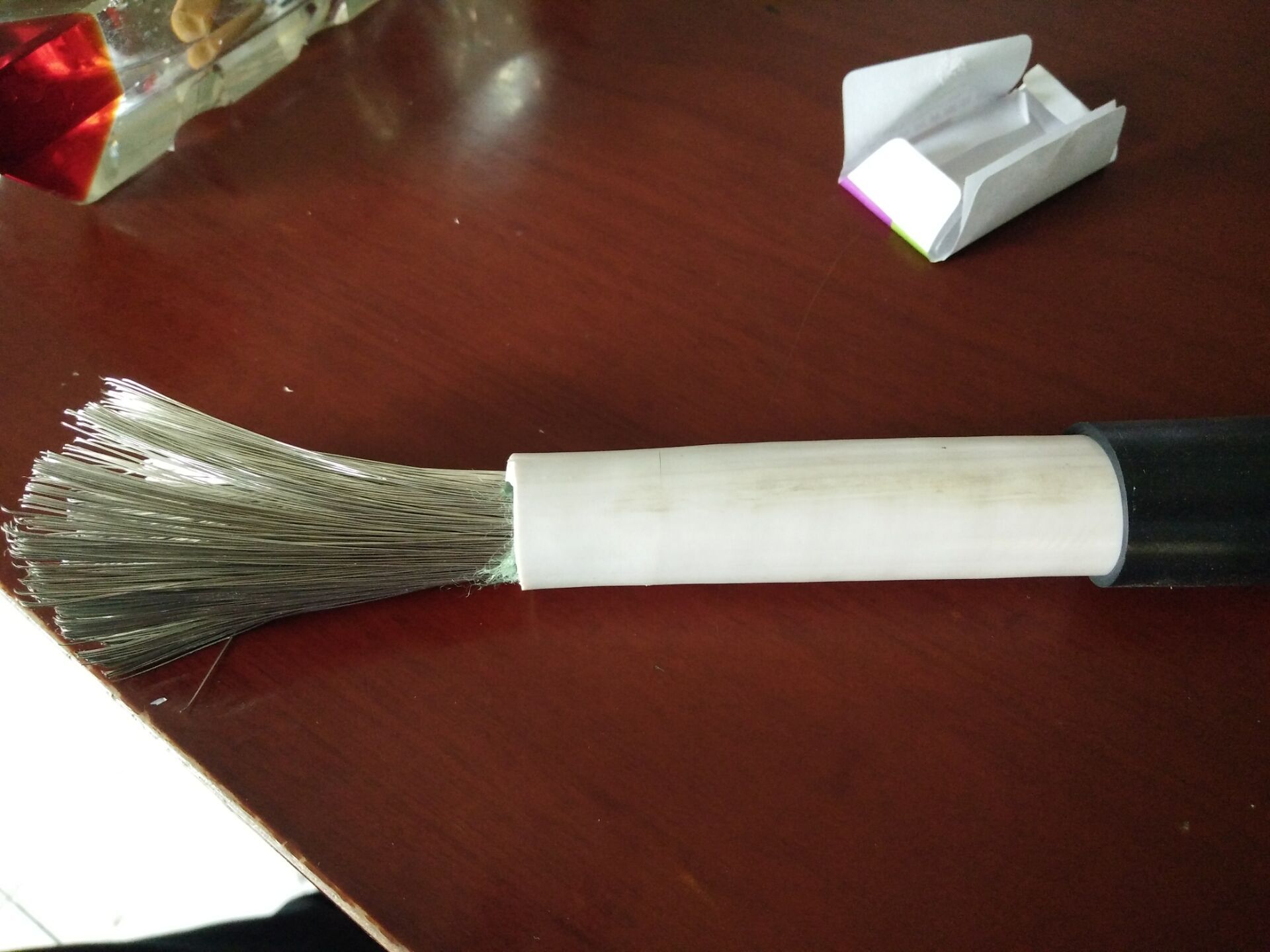 6、電線應(yīng)能經(jīng)受浸漆試驗(yàn),電纜經(jīng)130±5℃、5小時(shí)恒溫后,浸入溫度為50±5℃的1032漆中30分鐘,取出滴干,再經(jīng)130±5℃、48小時(shí)恒溫,后將電線卷繞在規(guī)定直徑的圓棒上,電線護(hù)套層應(yīng)無開裂、脆裂和發(fā)粘等現(xiàn)象。