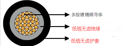 護套: 電子束交聯(lián),低煙無鹵阻燃復(fù)合物, 黑色