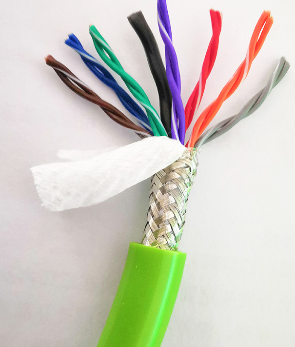 拖鏈屏蔽電纜 RVVSP-3*2*0.5不單單是柔軟的電纜,還應(yīng)具有耐磨抗拉耐彎曲的性能。 拖鏈屏蔽電纜 RVVSP-3*2*1.0的護(hù)套材料一般廠家用的是PVC,還有用彈性體的RTH,丁腈??捎喼疲耗秃?、彈性體、防水PE料、TPE、TPU、聚氨酯、低煙無(wú)鹵、阻燃等,導(dǎo)體可用無(wú)氧銅絲、鍍錫絲導(dǎo)體,五類超細(xì)導(dǎo)體等。軟電纜不單單護(hù)套材料有要求,電纜芯線結(jié)構(gòu)也是采用了短距離成纜結(jié)構(gòu),利用精細(xì)無(wú)氧銅絲短距離成纜,所以可極大增強(qiáng)電纜的抗拉性和耐彎曲性能。