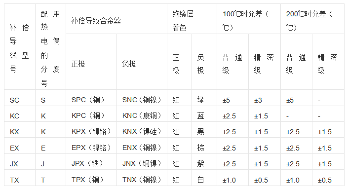 常用的補(bǔ)償導(dǎo)線有以下幾種: